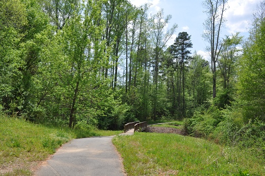 Trail path is paved with entrances near Clubhouse, Deer Brush, Chase Prairie, and the far end of Five Leaf Lane.